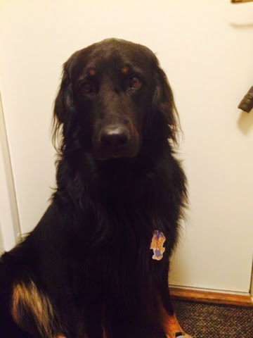 Vi glömde Baracks reflexväst, så han fick en reflexBamse istället. Han fick även ett nytt koppel med inflätat reflexband.